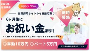 Post Share天白橋内科内視鏡クリニックです。 採用特設サイトをご覧いただきありがとうございます。現在募集中の職種は、以下の3職種です。・看護師/准看護師・臨床検査技師(正社員・パート)・医師(アルバイト)当クリニックは完全予約制で待ち時間に対するクレームもなくとても働きやすい環境です。 当クリニックで一緒に働けることを楽しみにご応募をお待ちしています。採用エントリー Post Share 【現在募集中の職種】看護師/准看護師 正社員及びパート・臨床検査技師 正社員及びパート・医師アルバイト・医療事務 正社員及びパート前の記事